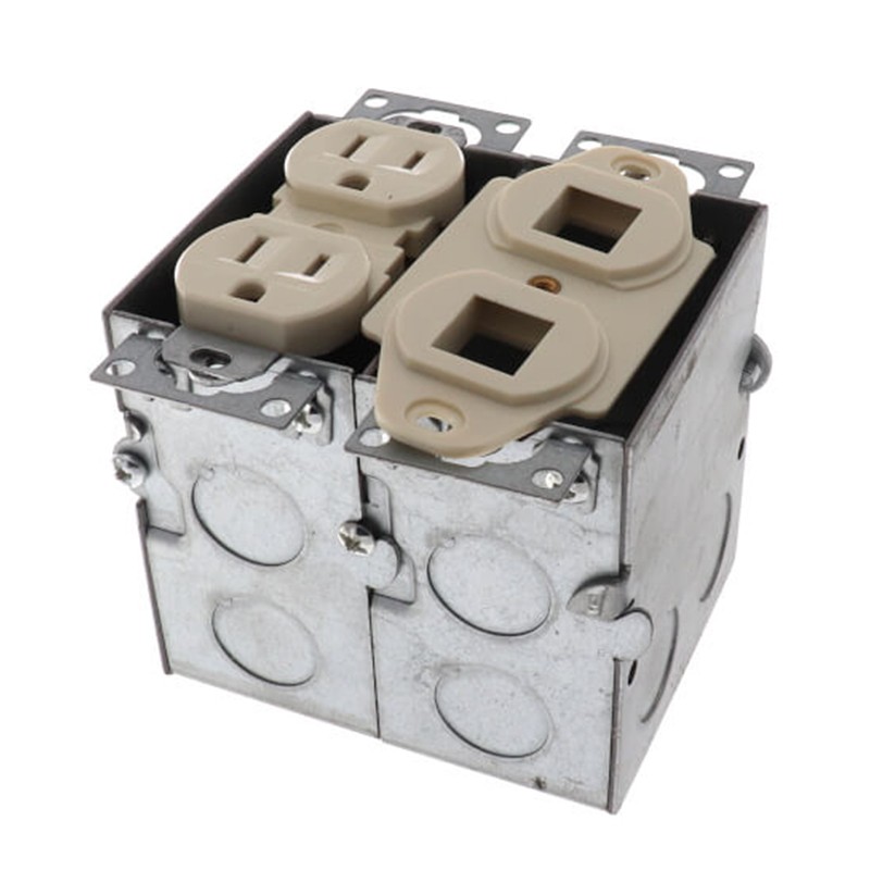 Gasketed square metal cover with flip lids to protect the receptacles when not in use. For new and existing floors.