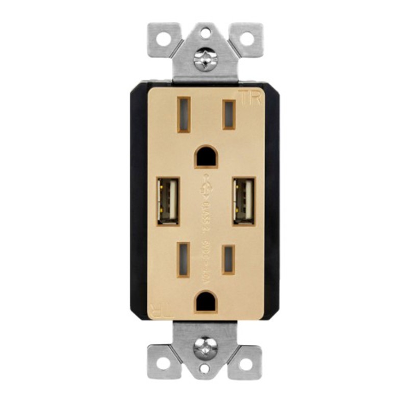 Enerlites 61501-TR2USB-S-GD Elite Series Dual USB Charger 4A with 15A Tamper-Resistant Duplex Receptacles, Gold