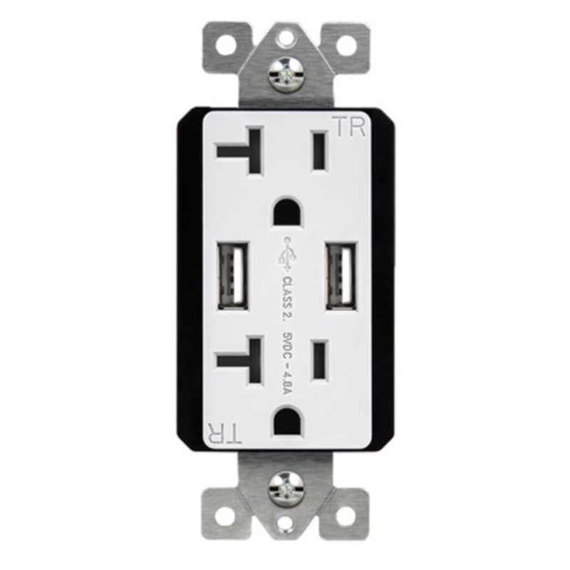Enerlites 62001-TR2USB-CC-W White Dual USB Charger 4.8A with 20A Tamper-Resistant Duplex Receptacles