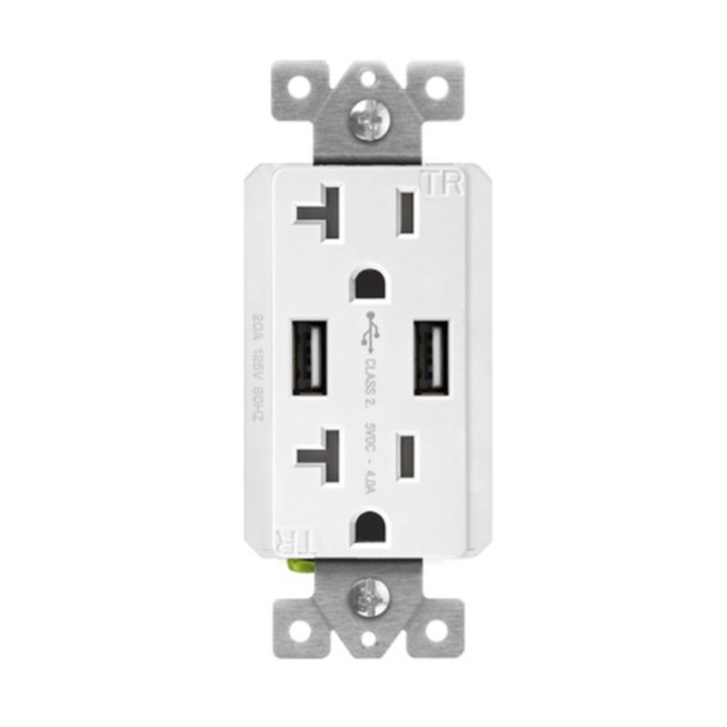 Enerlites 62001-TR2USB-S-W White Dual USB Charger 4A with 20A Tamper-Resistant Duplex Receptacles