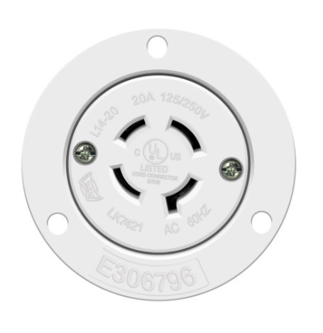 Enerlites 66424-W Locking Flanged Outlet, 20A, L14-20RFO