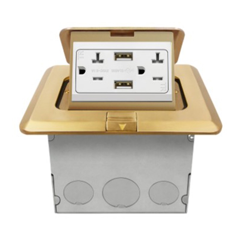 Enerlites 961248-C-USB 20A Brass Square Pop-up Tamper Resistant Floor Box Duplex Receptacles and 4A USB Ports