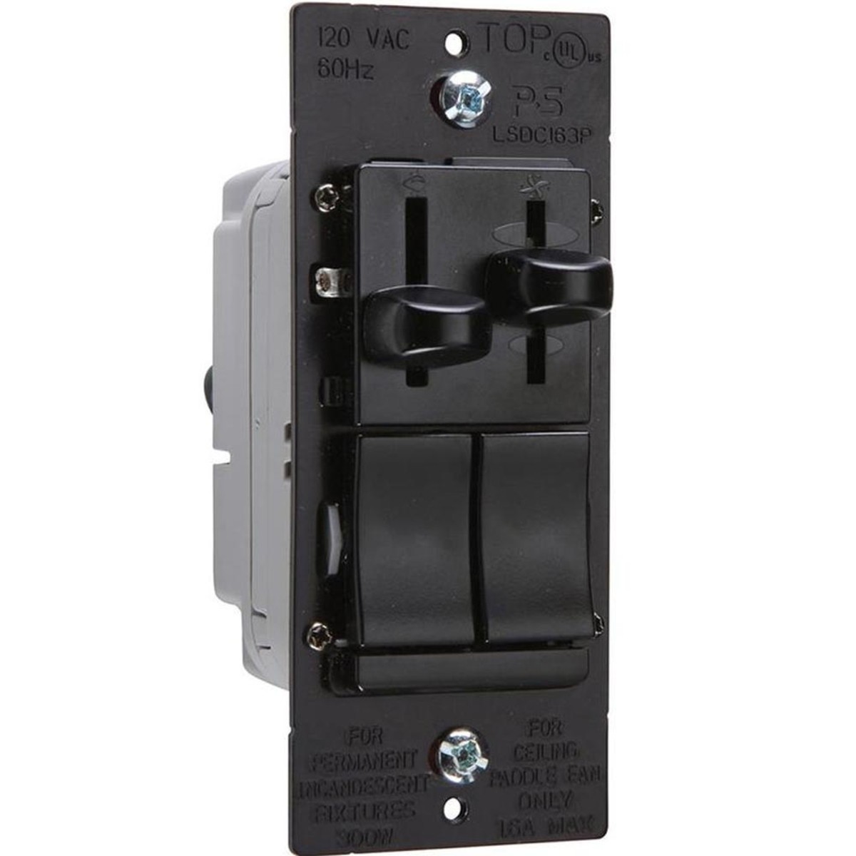 Legrand LSDC163PBKV Pass & Seymour 1.6 Amp 3-way Dual Slide Fan Control and Dimmer – Black