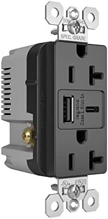 Legrand TR20HUSBACBK Pass And Seymour 20A 125V Duplex Hospital Grade Tamper-Resistant Receptacle And USBA-USBC 3.1A Black