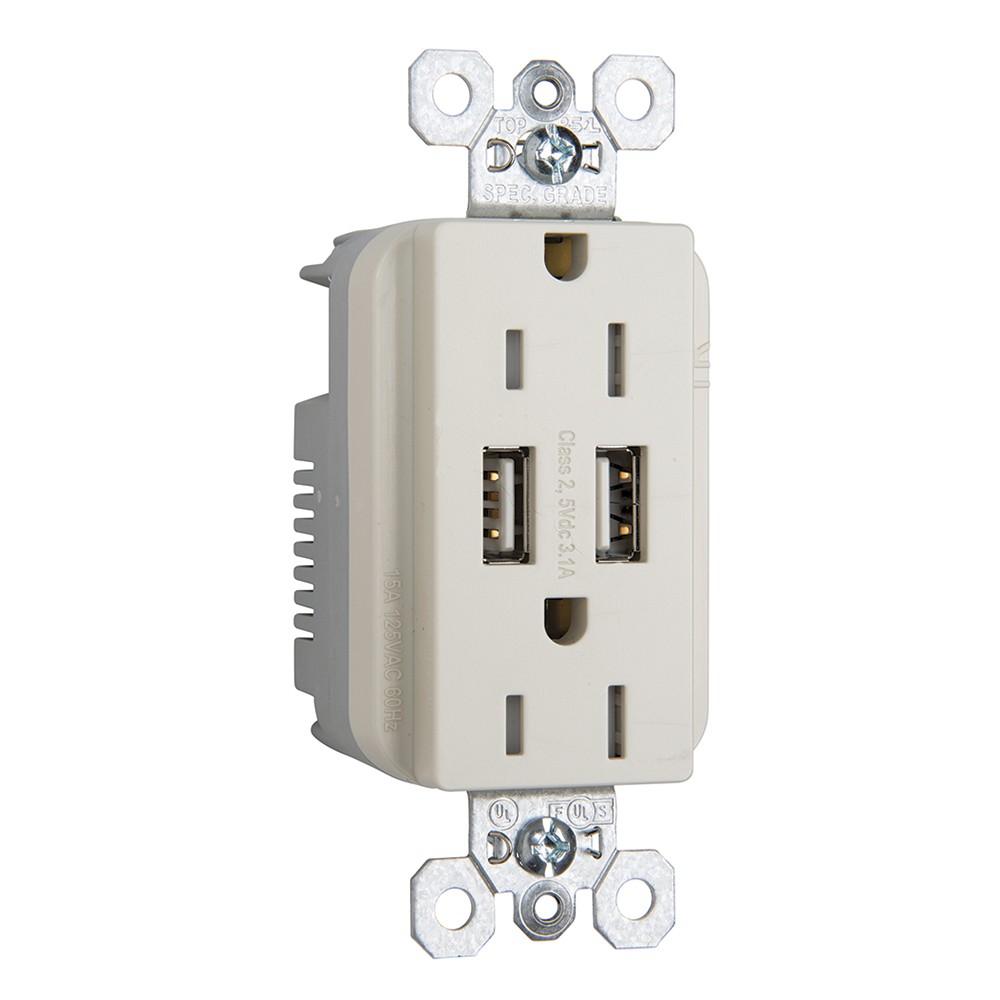 Legrand TR5262USBLA Pass And Seymour 15A Duplex Receptacle Tamper-Resistant Spec With 3.1A USB Charger
