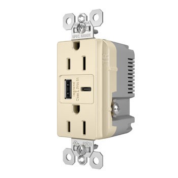 Legrand WRTR15USBAC6LA 15A 125V Weather-Resistant Tamper-Resistant Receptacle And USBA And USBC Fast Charge Light Almond