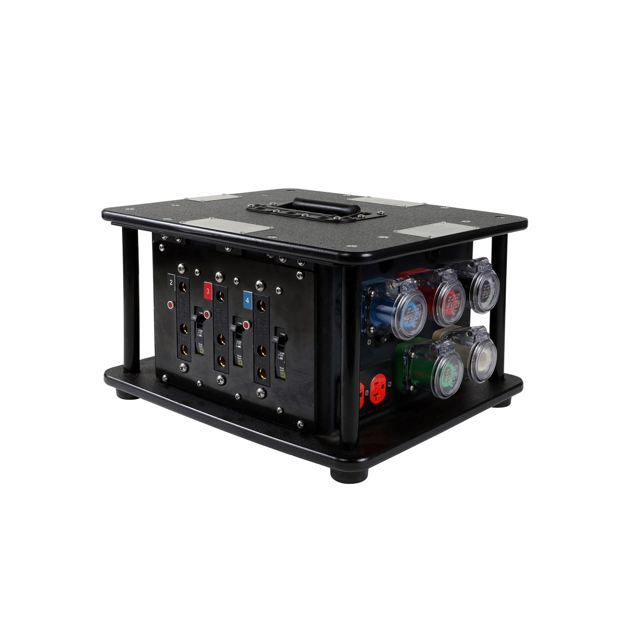 – Provides 100 Amp stage pin receptacles for high power lighting effects or to distribute power further downstream.