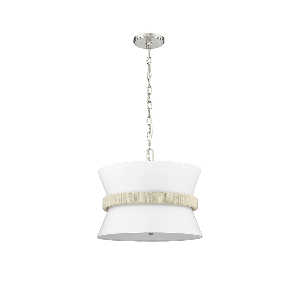 Shade: White fabric with White/Natural wicker ring