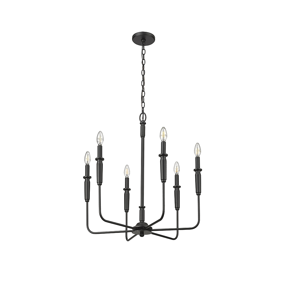 Millennium Lighting 29306-MB Savanne Six Light Chandelier Matte Black finish