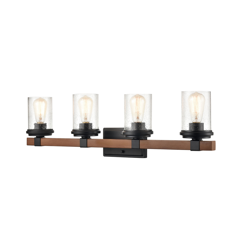 Millennium Lighting 3804-MB/WG Taos Four Light Vanity Matte Black finish Wood Grain finish