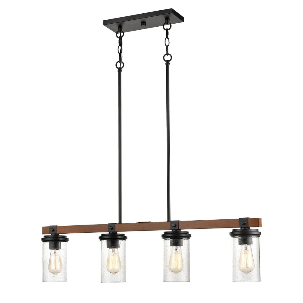 Millennium Lighting 3824-MB/WG Taos Four Light Island Lights Matte Black finish Wood Grain finish